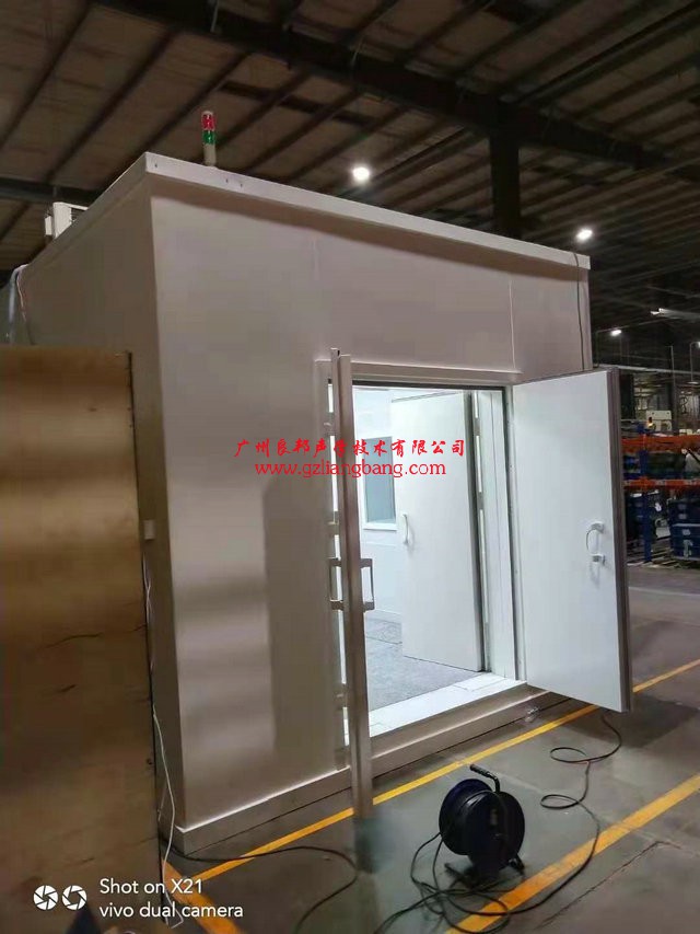 1工業(yè)產(chǎn)品測試評估靜音室外尺寸L3.98*W3.25*H3.05m內(nèi)尺寸L3.2*W2.6*H3m,雙門左右內(nèi)外對開,依據(jù)環(huán)境噪音四周無打樁及牛車來往小于75--80分貝(A)計權(quán),室內(nèi)本地小于35--40分貝(A)計權(quán),